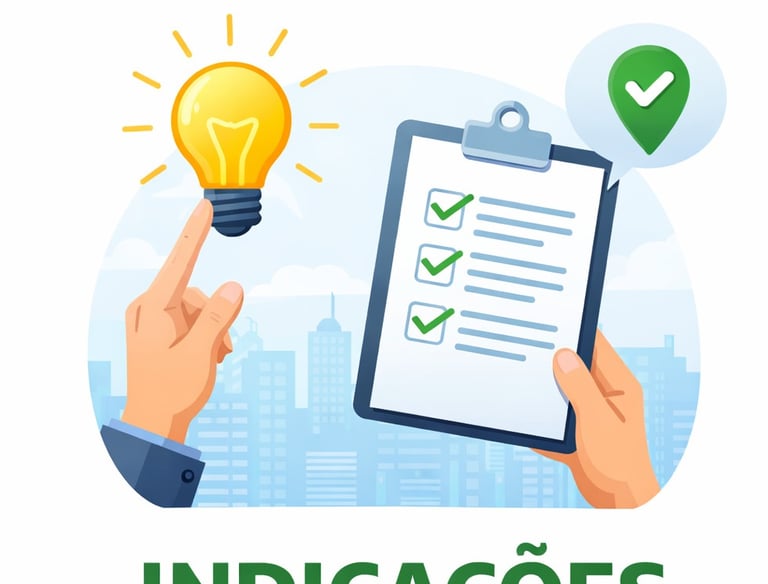Aqui você pode enviar ideias de melhorias para o município, como obras, serviços, ações ou ajustes na administração pública que podem ser encaminhados como indicações ao Poder Executivo.
